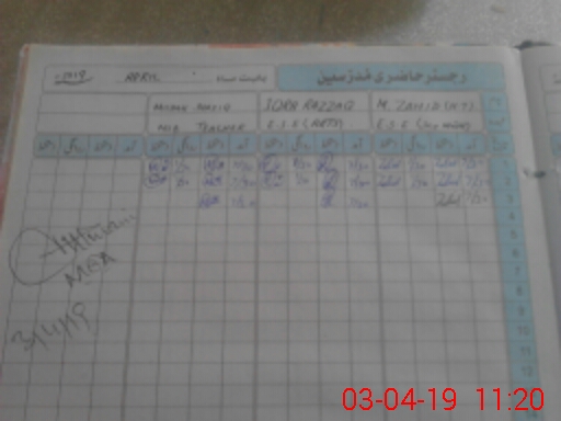 | CNIC | Full Name | Designation | R/C | Absence During Last Calender Month |
