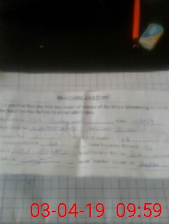 | Monitoring Date: 03-04-2019 | Start Time: 03-04-2019 09:08 AM | End Time: 03-04-2019 10:03 AM | Name of MEA: Ra**** Na**** (R**** | |