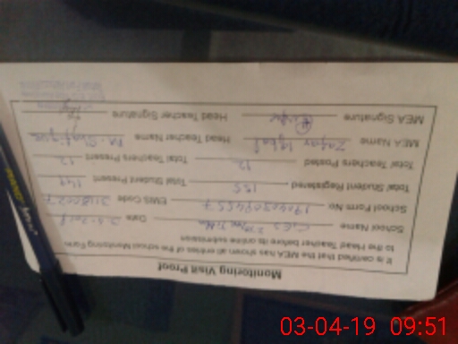 | Attendance Register | Head Teacher | MEA with School | Visit Proof |