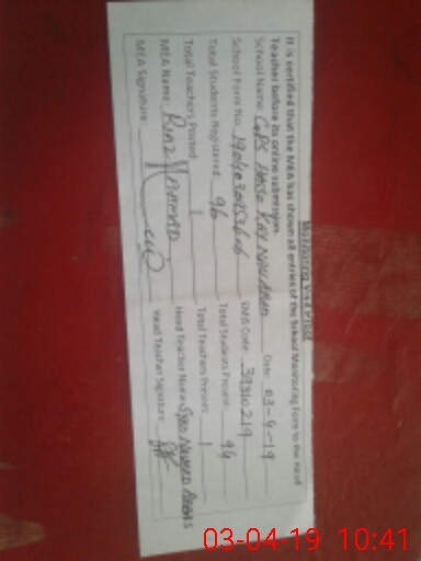| Certified that this School was Inspected by the Undersigned MEA/DMO Today and the Information Stated Above is as Per Record. | |||||