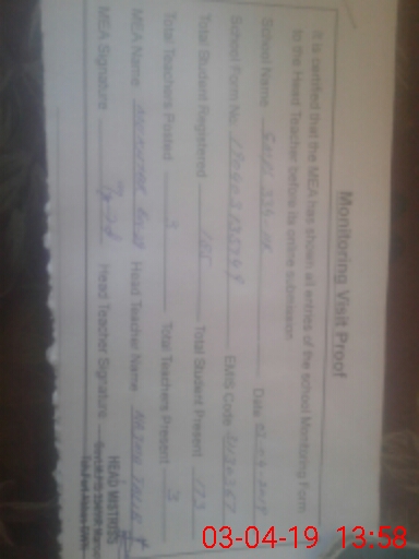 | Certified that this School was Inspected by the Undersigned MEA/DMO Today and the Information Stated Above is as Per Record. | |||||
