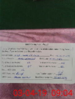 | Monitoring Date: 03-04-2019 | Start Time: 03-04-2019 08:39 AM | End Time: 03-04-2019 09:05 AM | Name of MEA: Ab**** Ka**** | |