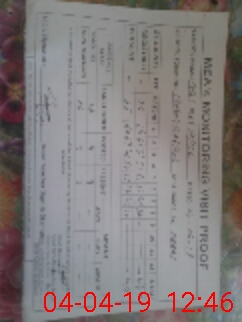 | Monitoring Date: 04-04-2019 | Start Time: 04-04-2019 11:27 AM | End Time: 04-04-2019 12:46 PM | Name of MEA: GH**** AB**** | |