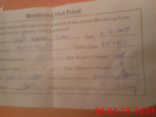 | EMIS Code: 31150323 | Name of School: GGPS KHUSHAL SINGH | |||