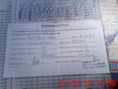 | Attendance Register | Head Teacher | MEA with School | Visit Proof |