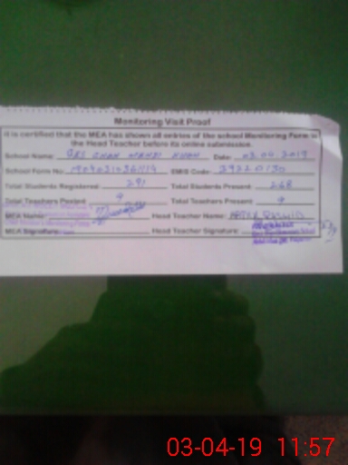 | Attendance Register | Head Teacher | MEA with School | Visit Proof |