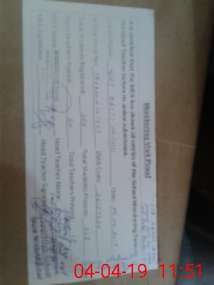 | Remarks (Use Separate Page if Required): SIS APP IS NOT BEING MAINTAINED SINCE OCTOBER 2018 STUDENTS ATTENDANCE REGISTERS OF MOSTLY CLASSES NOT HELD SATELLITE SCHOOL STUDENTS FOUND WITH OUT BOOKS DRINKING WATER ELECTRICITY AND TOILET FACILITIES FEW STUDENTS OF OTHER CLASSES ALSO FOUND WITHOUT BOOKS CLEANLINESS WAS POOR HEAD TEACHER INSISTED TO ENHANCE THE STUDENTS PRESENCE SSE KASHIF WAS PRESENT AT SCHOOL BUT HIS NAME IS NOT HELD WITH TEACHERS LIST | |||||