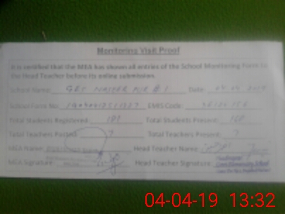 | Attendance Register | Head Teacher | MEA with School | Visit Proof |