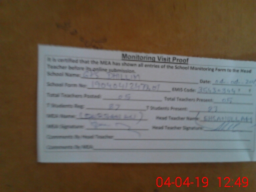 | Attendance Register | Head Teacher | MEA with School | Visit Proof |