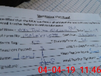 | Name: KA**** SH**** Designation: (School Headmaster's/Headmistress's) Pst Phone/Cell Number: 03**** |