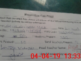 | Attendance Register | Head Teacher | MEA with School | Visit Proof |