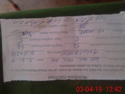 | Attendance Register | Head Teacher | MEA with School | Visit Proof |