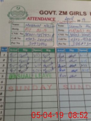 | CNIC | Full Name | Designation | R/C | Absence During Last Calender Month |