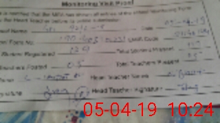 | Attendance Register | Head Teacher | MEA with School | Visit Proof |