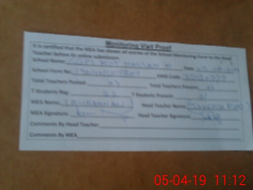 | Attendance Register | Head Teacher | MEA with School | Visit Proof |