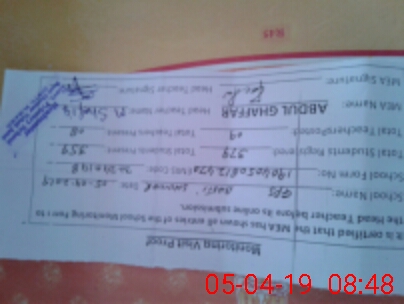| Name: MU**** SH**** Designation: (School Headmaster's/Headmistress's) ESE Phone/Cell Number: 03**** |