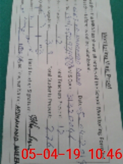 | Monitoring Date: 05-04-2019 | Start Time: 05-04-2019 09:39 AM | End Time: 05-04-2019 10:47 AM | Name of MEA: Mu**** Zu**** | |