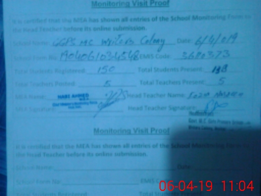 | EMIS Code: 36110373 | Name of School: GGPS MC WRITERS COLONY MULTAN | |||