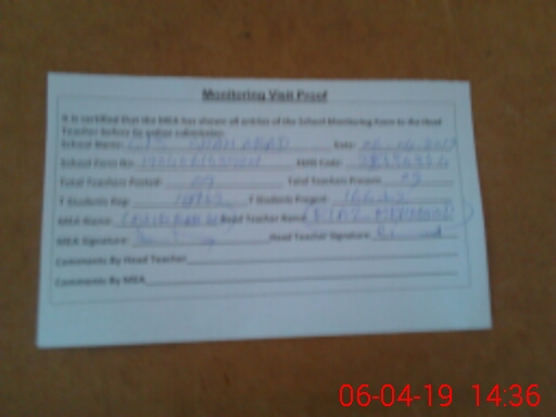 | Attendance Register | Head Teacher | MEA with School | Visit Proof |