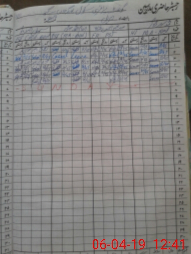 | CNIC | Full Name | Designation | R/C | Absence During Last Calender Month |