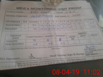 | Attendance Register | Head Teacher | MEA with School | Visit Proof |
