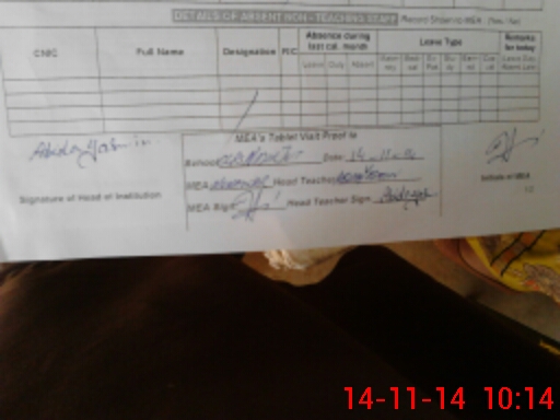 | Attendance Register | Head Teacher | MEA with School | Visit Proof |