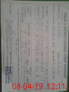 | Monitoring Date: 08-04-2019 | Start Time: 08-04-2019 10:22 AM | End Time: 08-04-2019 12:11 PM | Name of MEA: Mu**** Lu**** | |