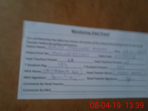 | Attendance Register | Head Teacher | MEA with School | Visit Proof |