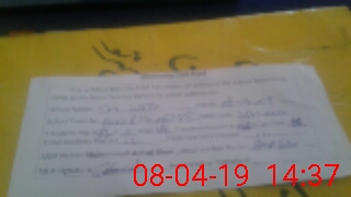 | Name: MU**** NA**** Designation: (School Headmaster's/Headmistress's) H MASTER Phone/Cell Number: 03**** |