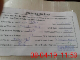 | Monitoring Date: 08-04-2019 | Start Time: 08-04-2019 11:13 AM | End Time: 08-04-2019 11:59 AM | Name of MEA: Za**** Iq**** BN**** | |