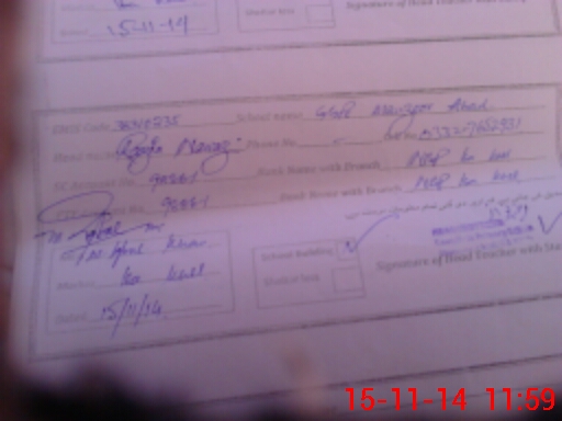 | Name: If**** Bi**** Designation: (School Headmaster's/Headmistress's) PST Phone/Cell Number: 03**** |