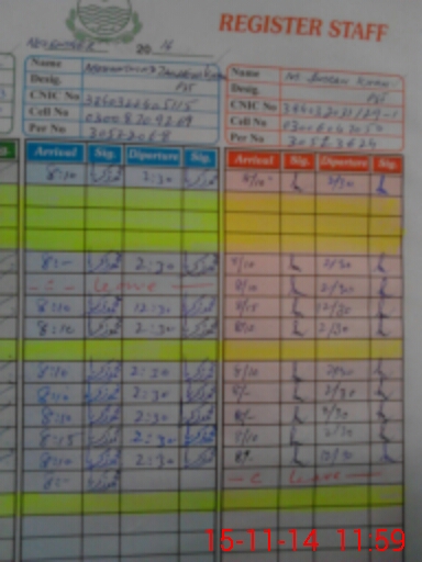 | CNIC | Full Name | Designation | R/C | Absence During Last Calender Month |