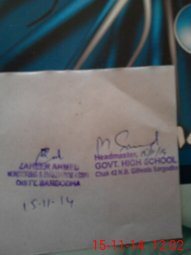 | EMIS Code: 38420130 | Name of School: GHS CHAK NO.42 NB GILL WALA | |||