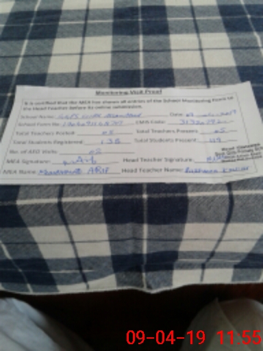 | Certified that this School was Inspected by the Undersigned MEA/DMO Today and the Information Stated Above is as Per Record. | |||||