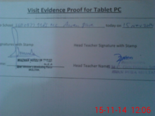 | Attendance Register | Head Teacher | MEA with School | Visit Proof |