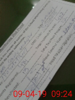 | Monitoring Date: 09-04-2019 | Start Time: 09-04-2019 08:38 AM | End Time: 09-04-2019 09:25 AM | Name of MEA: Mu**** Sa**** | |