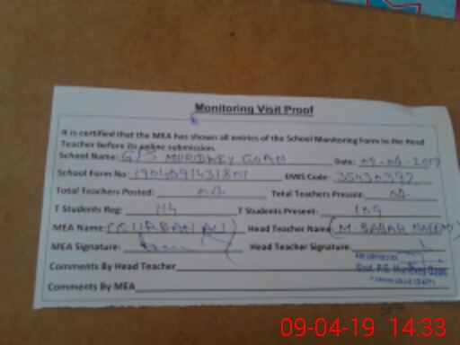 | EMIS Code: 35430392 | Name of School: GPS MURIDKEY GAON | |||