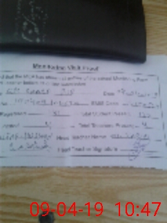 | Monitoring Date: 09-04-2019 | Start Time: 09-04-2019 09:54 AM | End Time: 09-04-2019 10:50 AM | Name of MEA: Al**** Hu**** BN**** | |