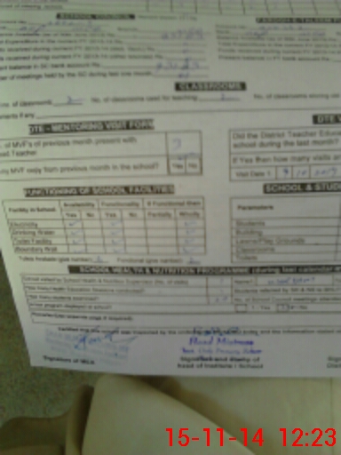 | Attendance Register | Head Teacher | MEA with School | Visit Proof |