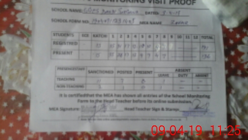 | Attendance Register | Head Teacher | MEA with School | Visit Proof |
