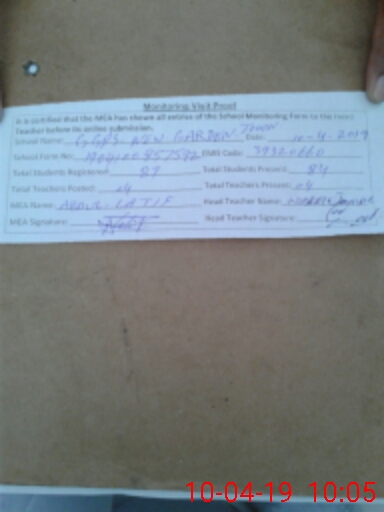 | Attendance Register | Head Teacher | MEA with School | Visit Proof |