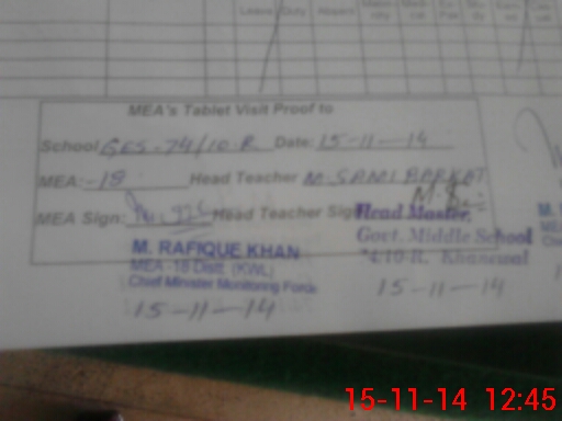 | Monitoring Date: 15-11-2014 | Start Time: 15-11-2014 11:29 AM | End Time: 15-11-2014 12:45 PM | Name of MEA: M.Ra**** Kh**** (R**** | |