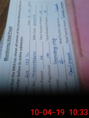 | Monitoring Date: 10-04-2019 | Start Time: 10-04-2019 09:58 AM | End Time: 10-04-2019 10:42 AM | Name of MEA: Za**** Hu**** | |
