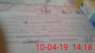 | Name: AB**** AL**** Designation: (School Headmaster's/Headmistress's) EST Phone/Cell Number: 03**** |