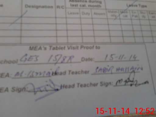 | Attendance Register | Head Teacher | MEA with School | Visit Proof |