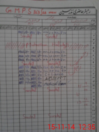 | CNIC | Full Name | Designation | R/C | Absence During Last Calender Month |