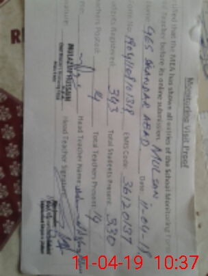 | Attendance Register | Head Teacher | MEA with School | Visit Proof |