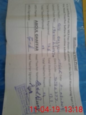| Attendance Register | Head Teacher | MEA with School | Visit Proof |