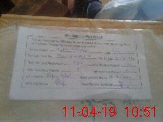 | Monitoring Date: 11-04-2019 | Start Time: 11-04-2019 10:34 AM | End Time: 11-04-2019 10:53 AM | Name of MEA: Za**** Iq**** BN**** | |