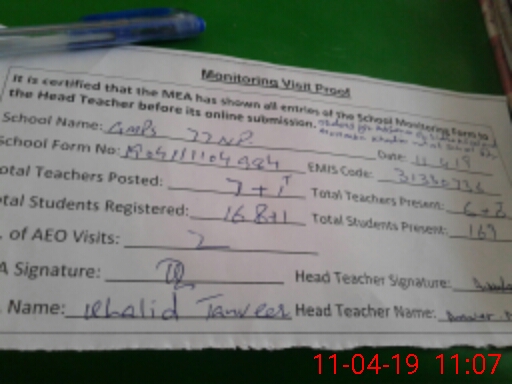 | Attendance Register | Head Teacher | MEA with School | Visit Proof |